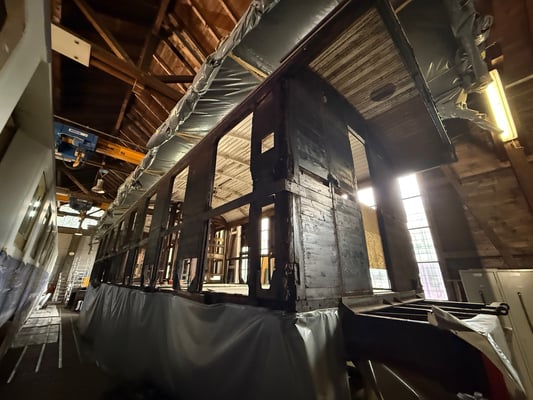 Was mich drinnen erwartete, war mehr als beeindruckend: Eine riesige Halle voller historischer Bahnwagen, die liebevoll gepflegt, restauriert und fit für die Zukunft gemacht werden. Florian ist gelernter Wagner und Teil des Teams der Historic Rail Service GmbH. Sechs Fachleute arbeiten hier mit Präzision und Leidenschaft an alten Lokomotiven und Waggons – spezialisiert, strukturiert und mit viel Erfahrung.